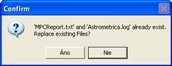 When you catch a moving object, measure its positions by clicking on it on all three pictures. When you click on moving object and Object verification window opens, you have to name it on the bottom of opened window. You can assign your "discovery" by 6 digits code. I name my objects as a krtxxx, where last three characters is the sequence number of object I am searching. After you named your object, click on Accept button. This way review whole image measure all detected objects. Positions of measured objects are stored in the MPCReport file, which you can open via menu bar in Files View MPC Report File.