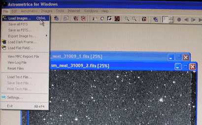Watch images as they appear on your screen and look for moving object against the starry background. Astrometrica has an automatic identification of moving objects (6th icon in menu bar - Moving Object Detection), but don´t use it! Better to rely on your eyes. At the start it will not be easy to catch the moving objects, later, after some practise, it will be easy. Automatic identification is so "perfect", that on image where are just a few real moving object, he would "detect" tens of them ....